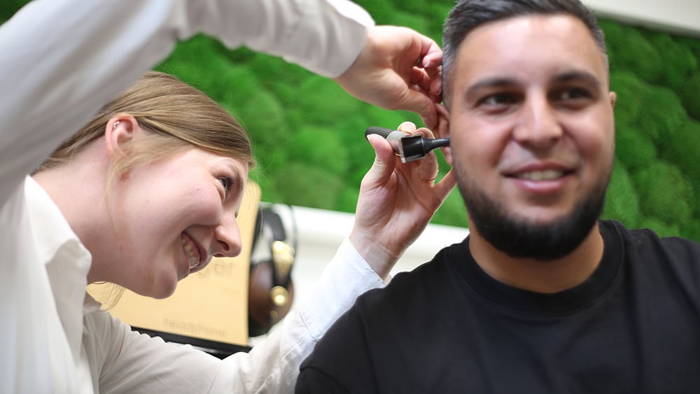 Bei der Otoskopie schauen wir tief in Ihren Gehörgang und können so die GröĂe Ihres Gehörgangs bewerten. Die GröĂe und Anatomie Ihrer Ohren, die Ergebnisse unsere Audiometrie sowie Ihr Hörprofil sind die Grundlage fĂŒr die Auswahl der HörgerĂ€te. Wir stellen Ihnen die Hörtechnik vor, die sich fĂŒr Ihre Versorgung eignen könnte. Dabei können wir auf ein groĂe Auswahl verschiedener Hersteller und Techniken zurĂŒckgreifen, Gemeinsam wĂ€hlen wir ein erstes ProbegerĂ€t aus. In der Regel werden auch Abformungen Ihrer Ohrmuschel und dem vorderen Teil des Gehörgangs genommen, diese sind notwendig fĂŒr die Fertigung von maĂgefertigten PassstĂŒcken oder Im-Ohr Lösungen. Denn jeder Hörverlust und jedes Ohr ist so individuell wie ein Fingerabdruck!
